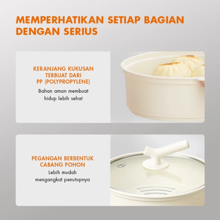 – 5in1 Fungsi ~ mengukus, merebus, menggoreng, menumis, dan menghangatkan makanan