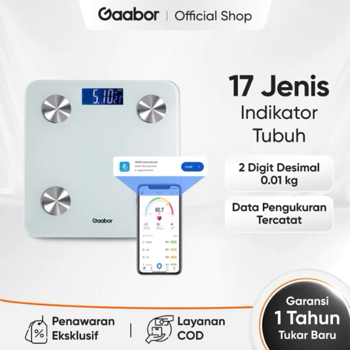 Tag | Badan, Berat, Connct HP, Digital, Gaabor, Lengkap, Smart Body Fat, smart scale, Timbangan |