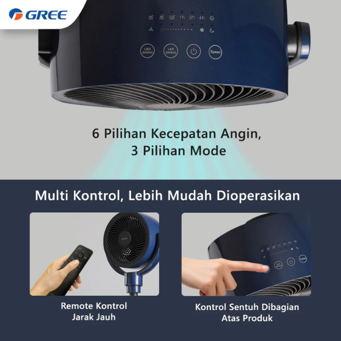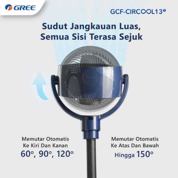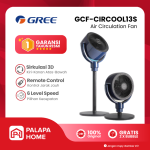 Gree Air Circulation Fan GCF-CIRCOOL13S adalah kipas sirkulasi udara multifungsi dengan desain yang fleksibel digunakan sebagai kipas lantai maupun kipas meja. Kipas ini dirancang khusus untuk memperlancar dan menyegarkan aliran udara di seluruh ruangan, bukan hanya memberikan hembusan angin langsung. Berbekal Blade Turbin Tornado dan motor berdaya rendah (), kipas ini mampu menghasilkan hembusan angin yang kuat hingga jarak . Kontrol pengoperasiannya sangat modern, dapat diatur melalui dan , menawarkan dan (Normal, Sirkulasi Cepat, Tidur). Dengan kemampuan melalui atas-bawah dan kiri-kanan, kipas ini efektif dalam menyebarkan udara sejuk ke setiap sudut ruangan.