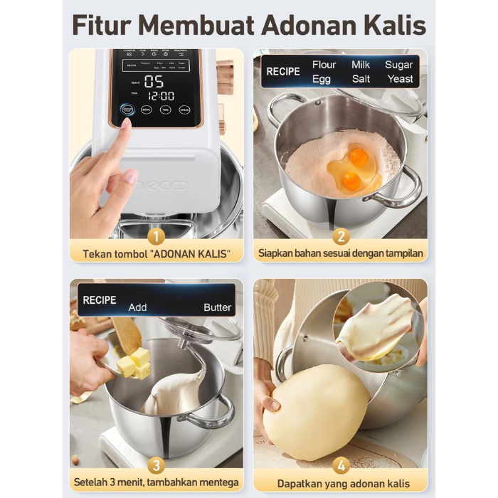 Tag | 6 Liter, Adonan, Aesthetic, Kapasitas Besar, Kue, Mecoo, Mikser, Premium, Roti, Smart LED, Stand Mixer, Touch Screen |