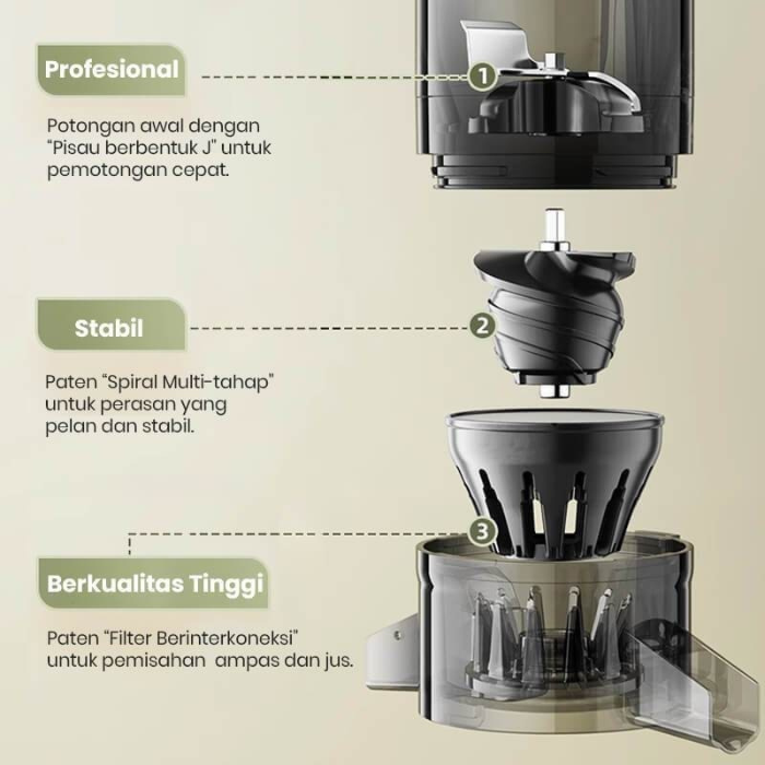 Nikmati jus sehat setiap hari dengan sentuhan gaya dari Mecoo Aesthetic Slow Juicer. Dirancang dengan desain yang minimalis dan elegan, juicer ini tak hanya fungsional, tetapi juga menjadi aksen cantik di dapur Anda. Menggunakan teknologi putaran lambat (slow press), juicer Mecoo secara lembut mengekstrak sari buah dan sayuran, memastikan kadar nutrisi, vitamin, dan enzim tetap terjaga maksimal, menghasilkan jus dengan rasa yang lebih kaya dan sedikit busa. Alat ini mudah dirakit, dioperasikan, dan dibersihkan, menjadikannya pilihan sempurna bagi Anda yang mengutamakan kesehatan tanpa mengorbankan estetika dan kepraktisan.